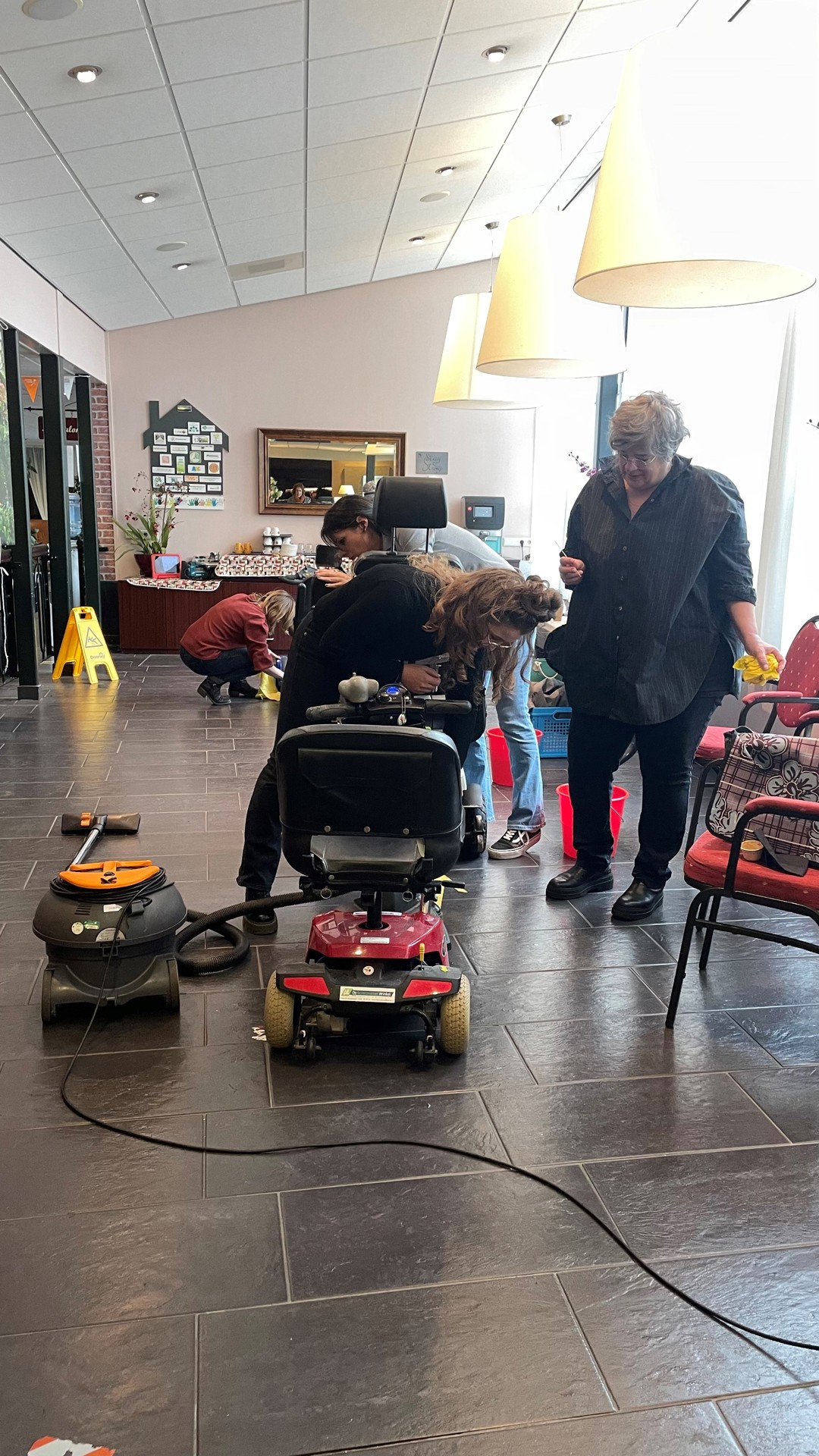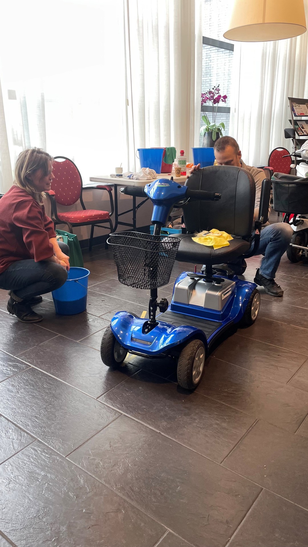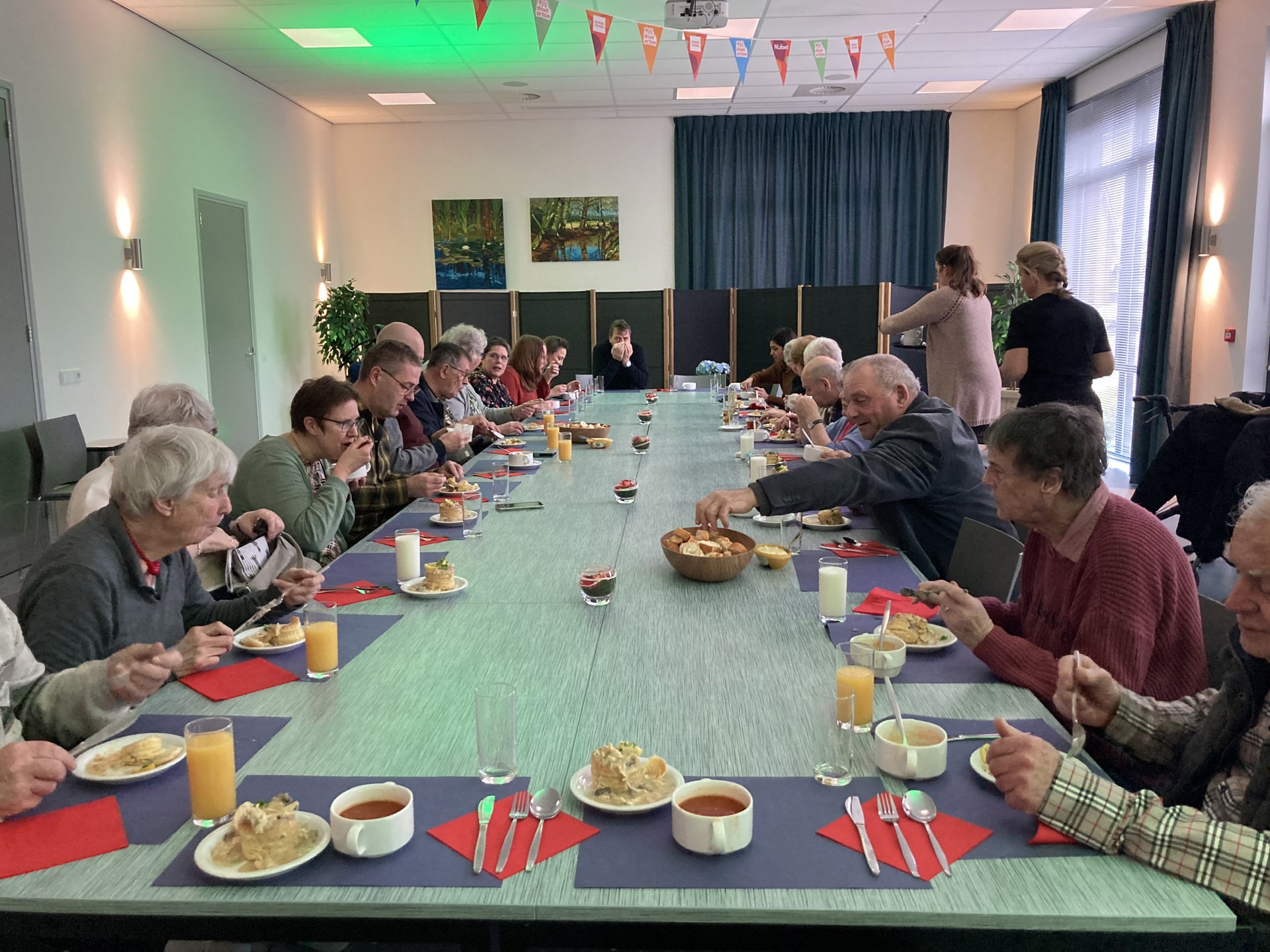 Afgelopen vrijdag gingen 17 enthousiaste collega’s aan de slag tijdens NL Doet bij zorgcentrum Kroonestede in Hoeven en het dorpshuis De Blokhut in Helwijk. In Kroonstede organiseerden we een binnen wasstraat voor de scootmobielen, rolstoelen en rollators van bewoners. Ook fleurden we de tuin op met mooie plantjes en hebben we bankjes gebeitst. In de Blokhut organiseerden we samen met medewerkers van Surplus Groep en Speeltuinvereniging Kindervreugd een lunch voor bewoners uit Helwijk en zijn de plantenpotten weer klaar voor het voorjaar! Dennis Wagenmakers van onze partner Bras Fijnaart deed ook gezellig mee op beide locaties. We kijken terug op een geslaagde dag en vonden het weer leuk om te doen! Dank aan Groenhuysen en de Blokhut voor de gastvrije ontvangst.