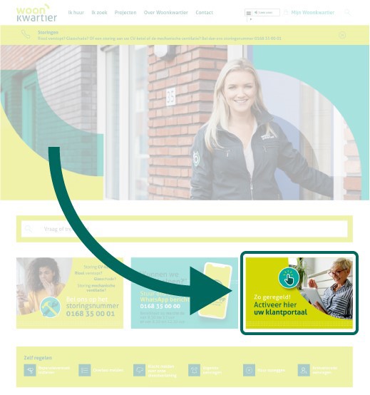 U gaat naar www.woonkwartier.nl en klikt op de knop ''Activeer hier uw klantportaal''.