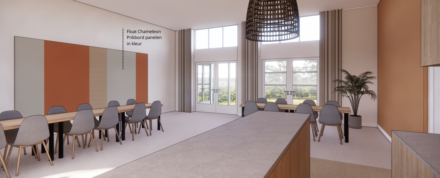 - Artist impression bijeenkomstruimte dorpshuis Noordhoek. Kijkwijzer: het gaat hier om een impressie van de bijeenkomstruimte. Zo wordt het definitieve kleurgebruik nog nader afgestemd met de gebruikers van het dorpshuis. Aan deze impressie kunnen verder geen rechten worden ontleend. Copyright Geluk Bouwgroep.
