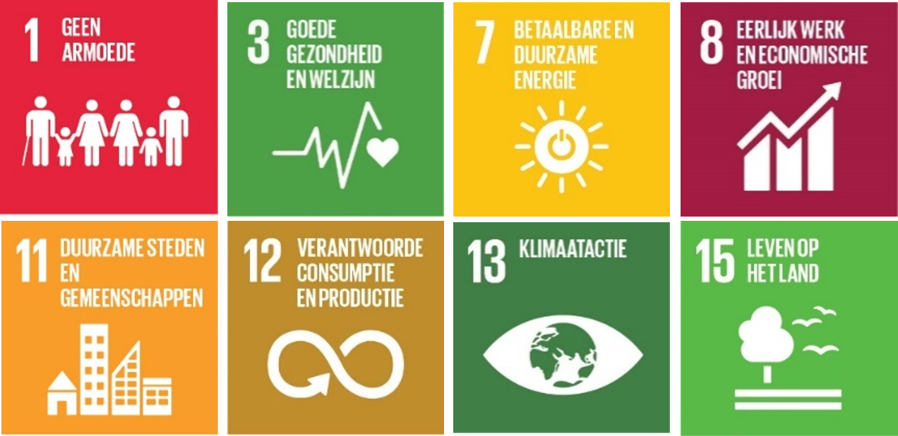 De opgave die we voor Woonkwartier zien en de beweging die we maken staan niet op zichzelf. In 2015 formuleerden de Verenigde Naties 17 doelen voor een duurzamere wereld. Vanuit onze rol als woningcorporatie kunnen we, samen met bewoners en organisaties verbonden met wijken en buurten, een (soms kleine, soms grotere) bijdrage leveren aan de volgende VN-doelen: