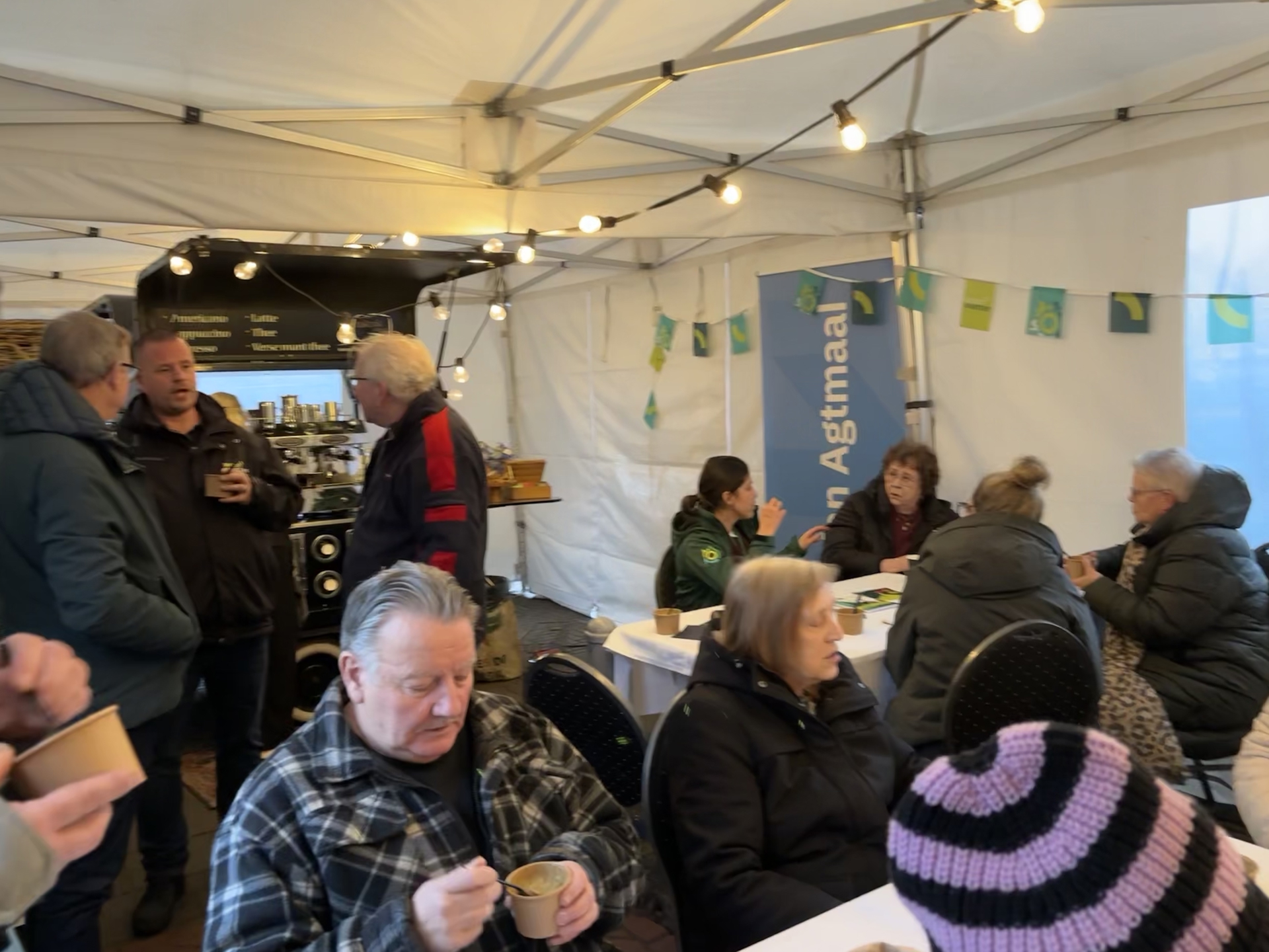 De bewoners van een groot onderhoud- en verduurzamingsproject in Bosschenhoofd nemen plaats aan tafel. Het is tijd voor een kop soep en een goed gesprek met de bewoners van de eerste 6 (van de 15) sociale huurwoningen- bouwjaar 1947-1955- waar Woonkwartier samen met Van Agtmaal B.V. druk bezig is met het grootschalig opknappen en verduurzamen.